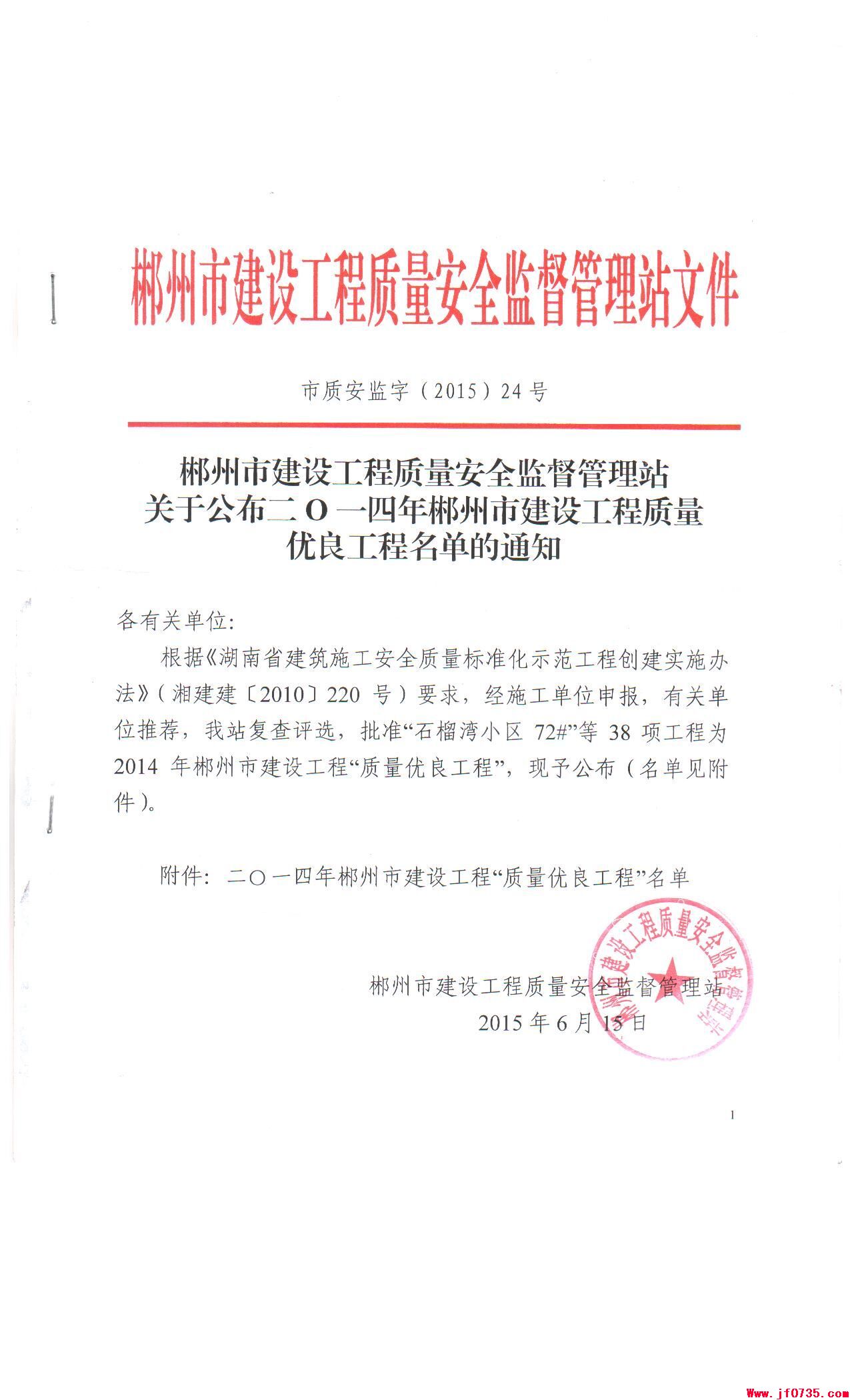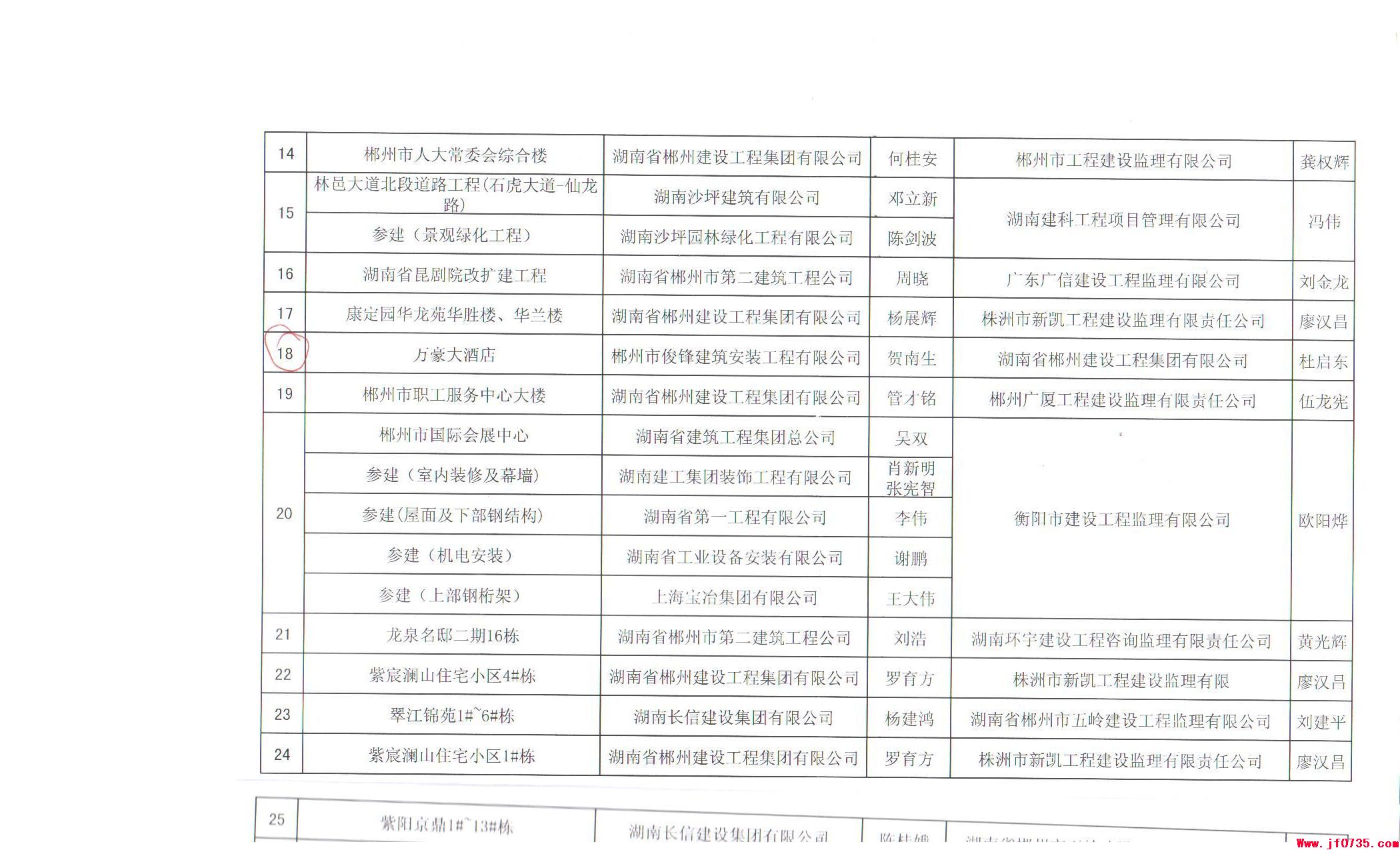 郴州市俊鋒建筑安裝工程有限公司建設的萬豪大酒店項目被評為“2014年郴州市建設工程質(zhì)量優(yōu)良工程”。