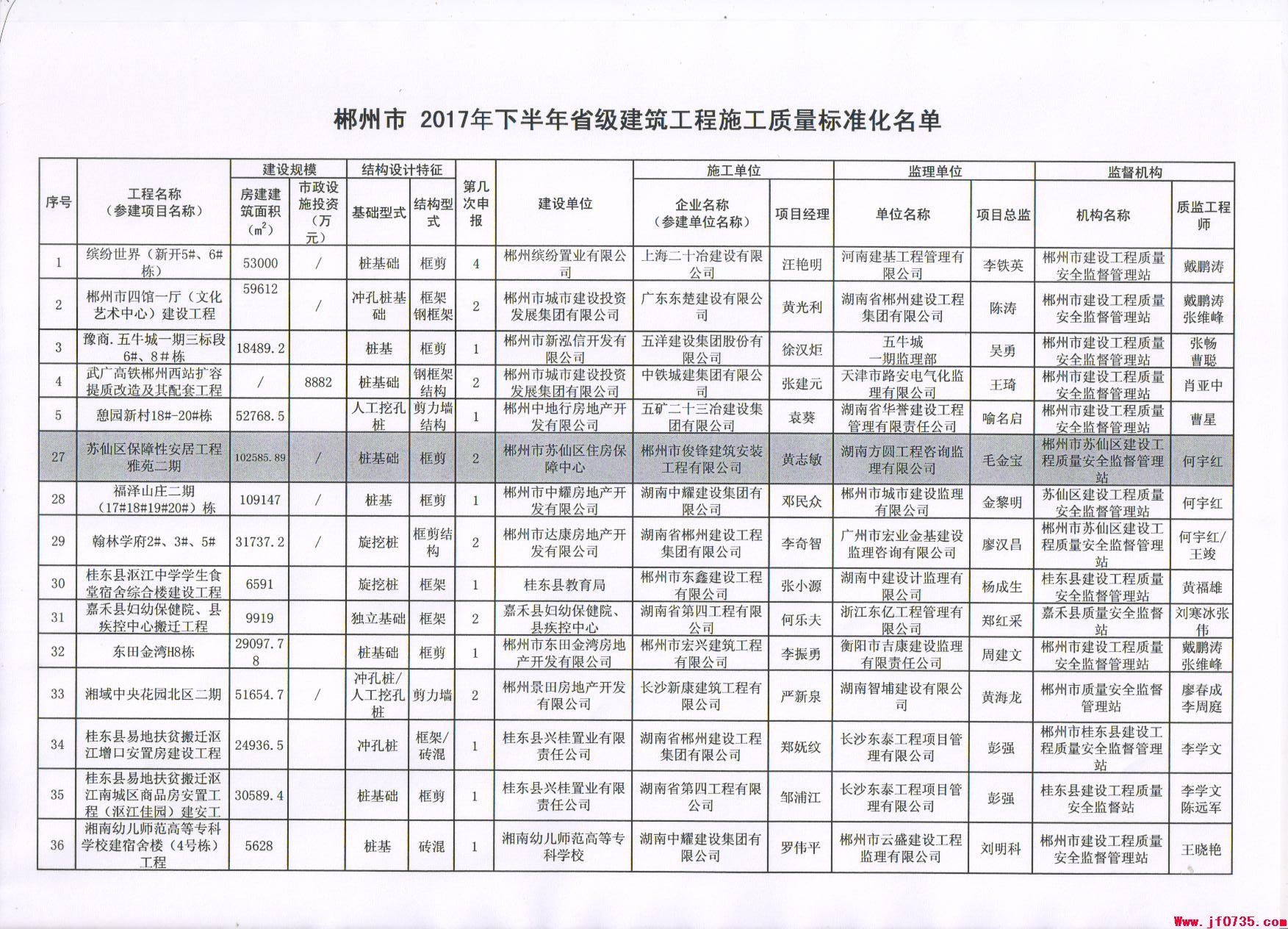 郴州市俊鋒建筑安裝工程有限公司承建的蘇仙區(qū)保障性安居工程雅苑二期工程被評為2017年下半年省級建筑工