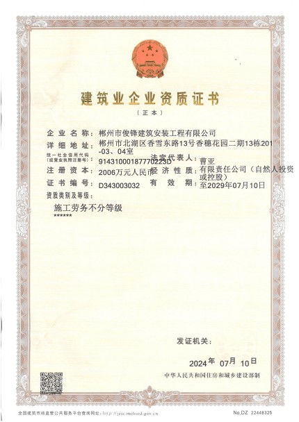 郴州市俊鋒建筑安裝工程有限公司成立于2003年10月,是一家具有房屋建筑工程